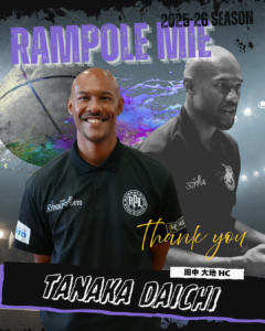 ランポーレ三重では、田中 大地(たなか だいち)ヘッドコーチとのコーチ契約が満了となりましたのでお知らせいたします。